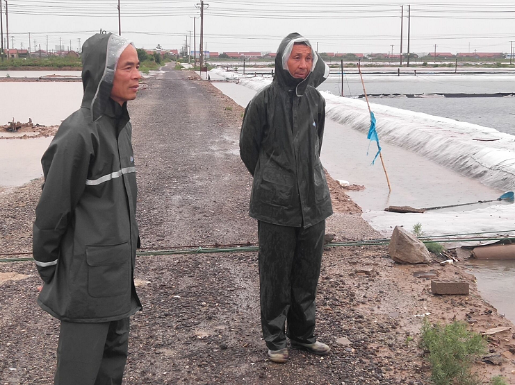 16日清晨,灌西投資公司常務(wù)副總經(jīng)理吳衛(wèi)平冒著暴雨親臨海水鹽基地檢查指揮防汛工作,并作出詳細(xì)防汛指導(dǎo)工作意見。