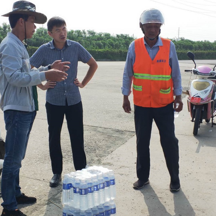 炎炎夏日,道路保潔、綠化養(yǎng)護的一線職工的工作環(huán)境和身體狀況時刻牽動著公司領(lǐng)導(dǎo)的心。8月11日下午,南翼公司書記季汝磊、分管安全領(lǐng)導(dǎo)許海霞一行到一線慰問奮戰(zhàn)在高溫下的工作人員,并送上了清涼飲品。囑咐一線職工要注意身體,防止中暑,上下班注意交通安全,做好防暑降溫措施。為一線職工送去了公司領(lǐng)導(dǎo)的關(guān)心,職工們深深地感受到了公司領(lǐng)導(dǎo)的關(guān)愛。(徐飛)