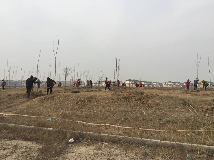 3月29日,南翼綠化公司100余名工人在大棚湖周邊開展植樹造林活動。 本次植樹造林活動是接臨港產(chǎn)業(yè)區(qū)的植樹工程,共植6000余株。為了抓時節(jié)、趕進度,大家齊心協(xié)力、每個人都干勁十足,熱情飽滿?,F(xiàn)場一派繁忙景象,挖坑的、扶樹的、培土的、澆水的,雖然大家分工不同,目標卻只有一個,注重植樹質量,確保樹苗的成活率,就是用自己的行動為美化環(huán)境貢獻一份力量。(王薇)
