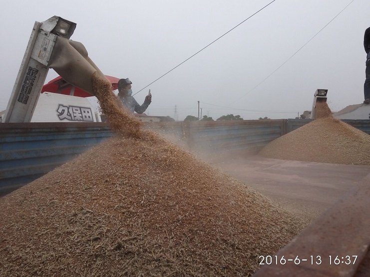 他立即會(huì)同農(nóng)業(yè)分公司的全體員工,開赴地頭,搶收小麥。聯(lián)合收割機(jī)馬力開足,看著一壟壟小麥被收割完,看著一袋袋小麥被裝運(yùn)上車,該公司參加搶收人員仍然忙碌著。天黑了,他們打開車燈和手提電燈,頂著高溫、忍受著蚊蟲的叮咬,目標(biāo)只有一個(gè),在雨到來前一定要完成小麥搶收任務(wù)。