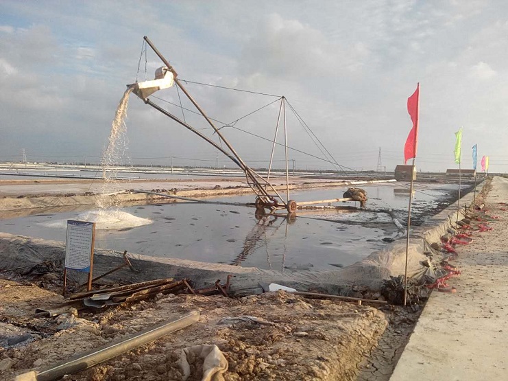 9月16日上午,隨著機器一聲轟鳴,新河制鹽分公司七班扒鹽機組輸鹽大架銀瀑飛濺,拉開了新河制鹽秋季扒鹽的序幕。