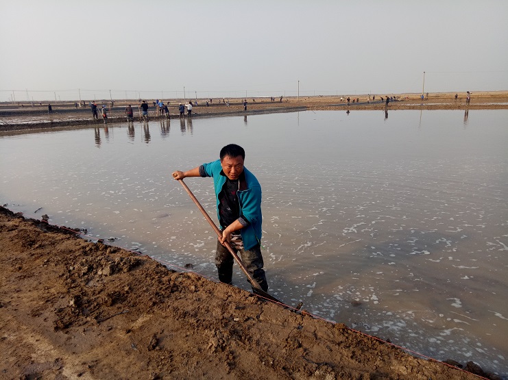 近日,實業(yè)公司制鹽分公司海鹽基地,一班班組灘場改造呈現(xiàn)出一片繁忙的景象。日曬制鹽新河制鹽分公司、埒南制鹽分公司等兄弟單位近兩日,輪流調(diào)動數(shù)百余人參加實業(yè)公司海鹽基地?fù)茰献鲔髸?zhàn)?,F(xiàn)場場面十分壯觀,大家干得熱火朝天:有挖泥澆水的、踩泥打堰的、抹埝找平的......員工們齊心協(xié)力地打好這次攻堅戰(zhàn)。本次共計撈溝做埝近四千米。實業(yè)公司全體員工對兩公司的辛勤勞動給予了贊許和由衷的感謝。(史祥燕)