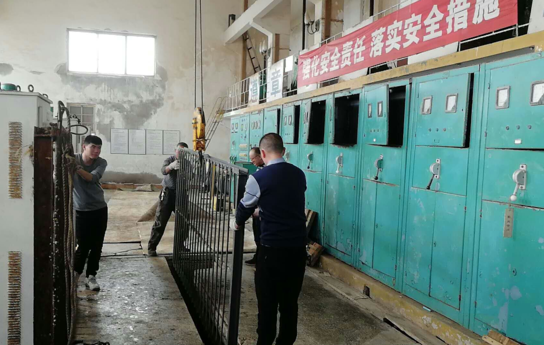 3月14日上午,機電服務(wù)公司配合投資公司相關(guān)工作人員,對海堤閘站機電設(shè)備進行了認真安全排查。其中六圩閘站攔浮柵1片,因使用年久,已嚴重損壞,時值海水供給高峰期,為保障機泵設(shè)備安全運行,需及時更新。為此該公司能及時、主動向分管領(lǐng)導(dǎo)請示,急事急辦。編制預(yù)算、購買材料、安排人員等有條不紊。從下午2點開始操作,2個多小時完成了更新工作,既排除了隱患,又為晚上正常開機揚水,提供了保障。(機電服務(wù)公司)