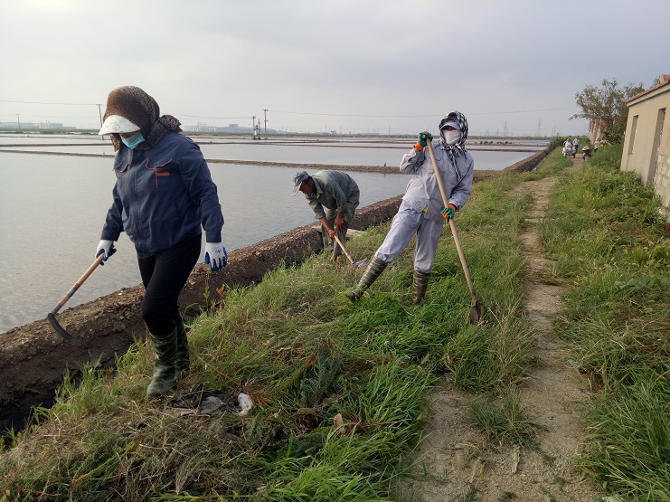 近日,實(shí)業(yè)公司海鹽基地,柴門(mén)區(qū)三個(gè)班組加緊對(duì)灘場(chǎng)進(jìn)行除草行動(dòng)。夏日雜草叢生,嚴(yán)重影響灘容灘貌,且對(duì)灘格、溝道等造成制鹵障礙,各班組長(zhǎng)帶領(lǐng)工人緊抓時(shí)間、人機(jī)結(jié)合除草。截止今日,三個(gè)班組共除草九千余米。(實(shí)業(yè)公司)