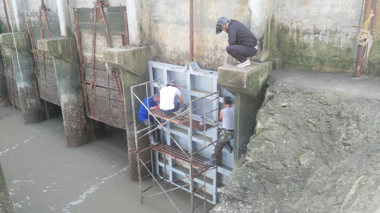 為確保機(jī)電設(shè)備運(yùn)行正常,按時(shí)供好水,服務(wù)好海水養(yǎng)殖業(yè)。連日來,機(jī)電服務(wù)公司認(rèn)真組織好修理人員,對(duì)六圩閘站機(jī)電設(shè)備進(jìn)行修理維護(hù)。在市勞模、機(jī)修組長王緒華的帶領(lǐng)下,所有參加人員不怕臟和累,趕潮水,對(duì)水泵、閘門、啟閉機(jī)等進(jìn)行維修作業(yè)。該組有6名修理人員,其中有3名是黨員,1名黨積子,他們能身先士卒,發(fā)揮了黨員先鋒作用,二星級(jí)員工程洪連能吃苦在前,臟了3套工作服,都沒有心疼。經(jīng)過近2周時(shí)間維護(hù)修理,共修理155KW水泵2臺(tái)、啟閉機(jī)1臺(tái),拆除木閘門、安裝鋼閘門各1塊、更新草擋2片。為正常開機(jī)揚(yáng)水提供了保障。(機(jī)電服務(wù)公司)
