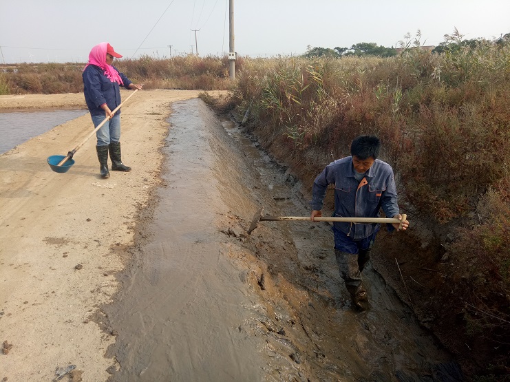 自十一月底召開冬準(zhǔn)會議以來,實(shí)業(yè)公司冬準(zhǔn)工作有序進(jìn)行。分公司柴門區(qū)海鹽基地三個班組:撈溝做埝、清理淤塘、整理塑池,做好灘場文明工作。進(jìn)一步加強(qiáng)對越冬塑池的管理,做好塑布防寒防風(fēng)工作,以防凍壞或刮壞。加強(qiáng)安全工作:防凍、防火、防雨雪天氣交通安全,安全用電,確保分公司安全生產(chǎn)的良好態(tài)勢。 (實(shí)業(yè)公司)