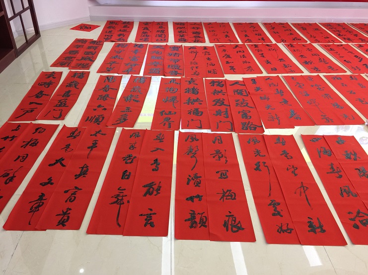 此次活動共邀請了3位書法愛好者為職工免費寫春聯(lián)、贈春聯(lián),紅色的春聯(lián)和熱鬧的人群將活動現(xiàn)場映襯得年味十足。書法愛好者們飽含熱情,擺開書案,攤開宣紙,揮毫潑墨,將真誠的祝福賦諸筆端。宵洋物流的職工們紛紛趕來現(xiàn)場排隊幫忙,互相談?wù)撝鞲贝郝?lián)的寓意,有的根據(jù)新年心愿從準備好的春聯(lián)中精心挑選特邀書寫,有的期望書法愛好者為其精心定制現(xiàn)場創(chuàng)作。濃濃的情意、真摯的祝福溢于字里行間,大家拿著一幅幅寓意喜慶,飽含祝福的春聯(lián),喜笑顏開,不停表達著對灌云縣海事局和縣書法協(xié)會的感謝。(宵洋物流 邱利民)