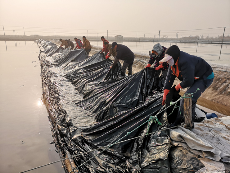 進(jìn)入5月下旬,天氣時陰時晴,新河制鹽分公司積極組織勞動力,要求各班組做到扒鹽和塑布安裝相結(jié)合、相推進(jìn),截至當(dāng)前,180塊計5400公畝塑布已經(jīng)安裝完畢,此項(xiàng)工作的完成對降低鹵耗,減少跑冒滴漏起著決定性作用。(程龍)