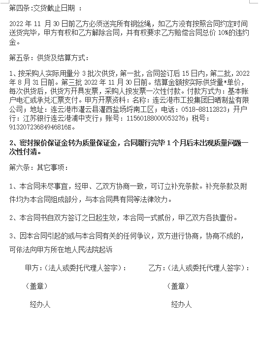 連云港市工投集團(tuán)日曬制鹽有限公司鋼絲繩采購項目