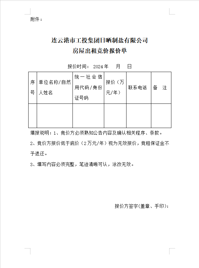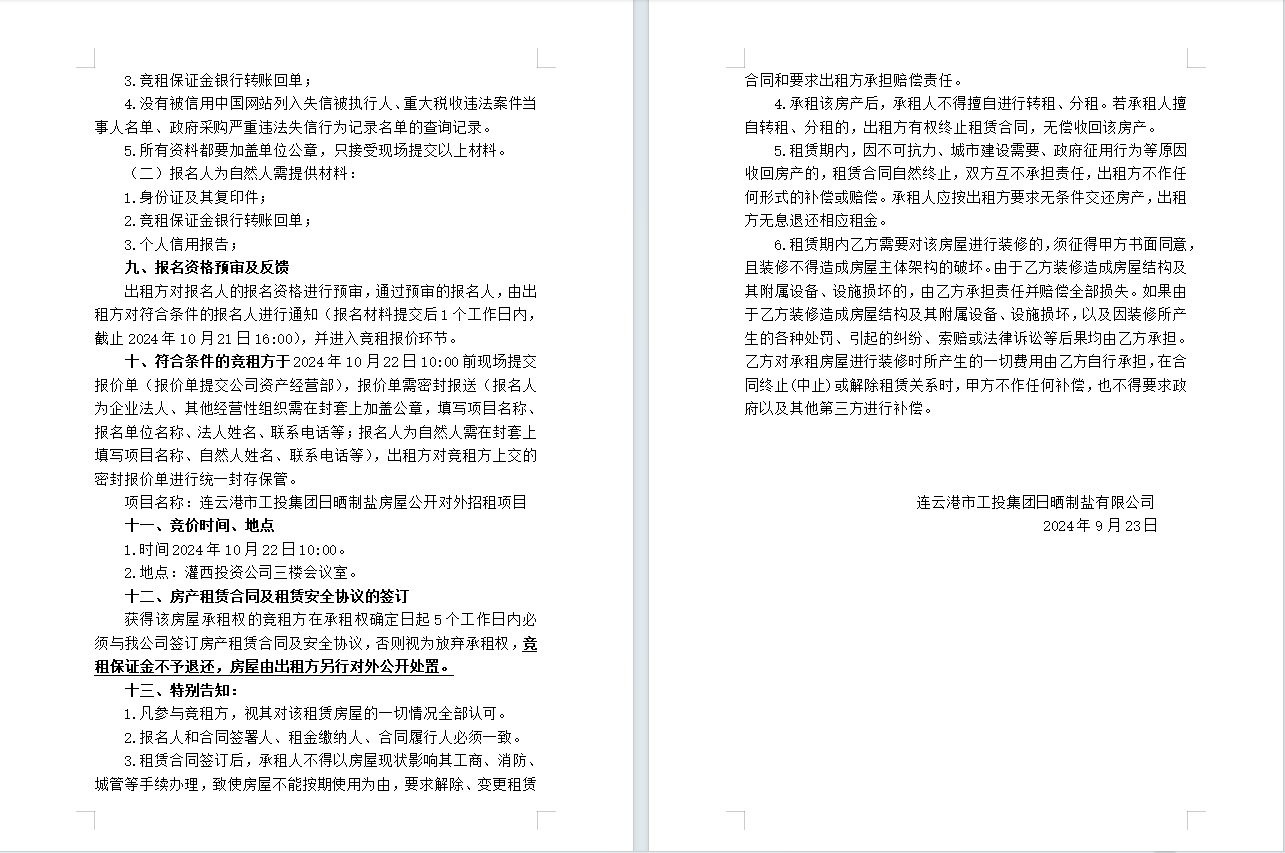 連云港市工投集團(tuán)日曬制鹽有限公司 房屋對(duì)外公開招租公告