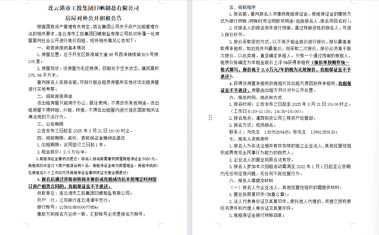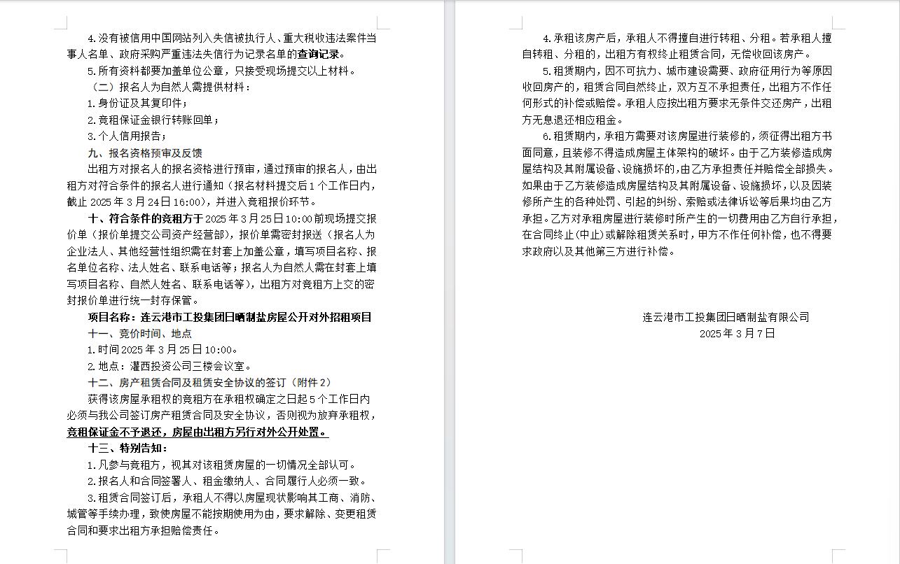 連云港市工投集團(tuán)日曬制鹽有限公司房屋對(duì)外公開(kāi)招租公告