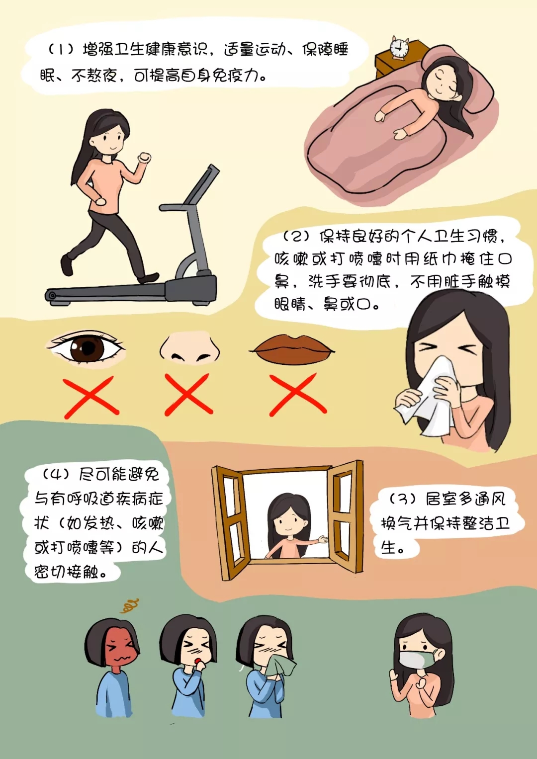 (1)增強(qiáng)衛(wèi)生健康意識(shí),適量運(yùn)動(dòng)、保障睡眠、不熬夜,可提高自身免疫力。