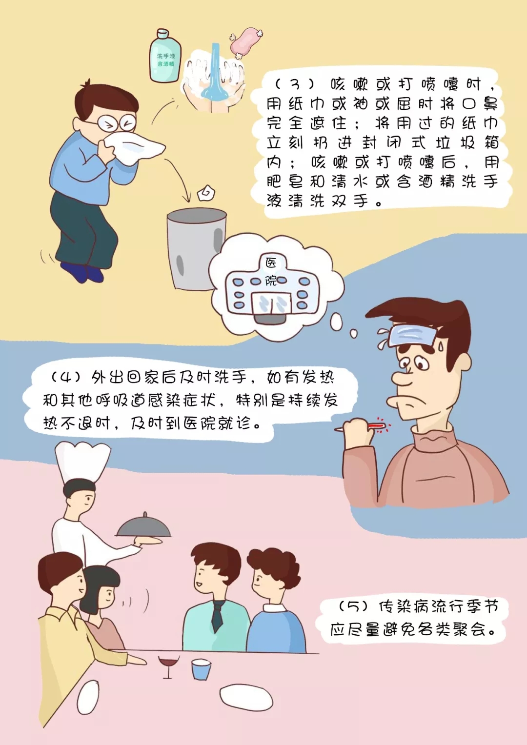 (5)傳染病流行季節(jié)應(yīng)盡量避免各類(lèi)聚會(huì)。
