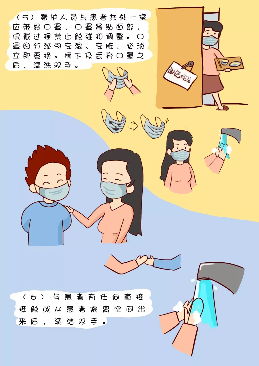 (2)限制看護(hù)人數(shù),盡量安排一位健康狀況良好且沒(méi)有慢性疾病的人進(jìn)行護(hù)理。拒絕一切探訪。