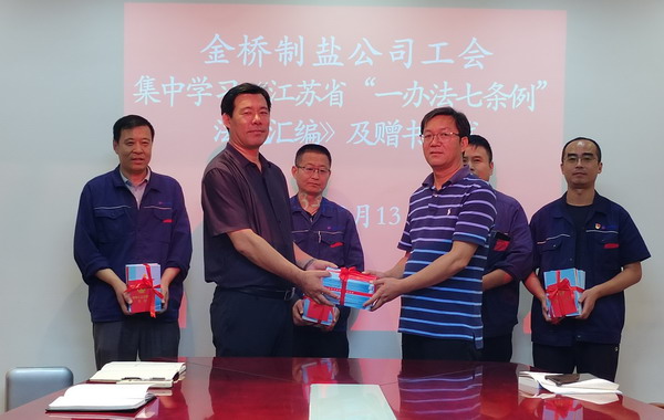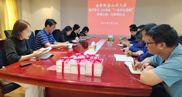 為落實市總及集團工會相關(guān)要求, 9月13日,我公司工會舉辦集中學(xué)習(xí)《江蘇省“一辦法七條例”法規(guī)匯編》活動及贈書儀式。公司工會負責人,各分會、人資部門、安全部門負責人,部分職工代表參加。