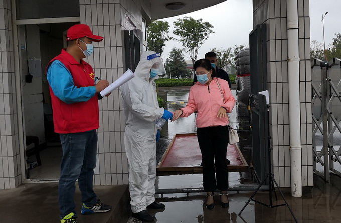 機關(guān)部室志愿者配合做好體溫測量、消毒及進出人員登記