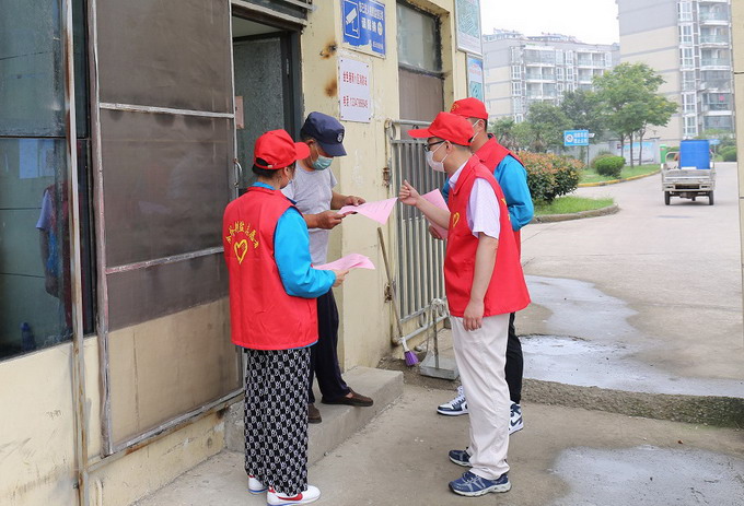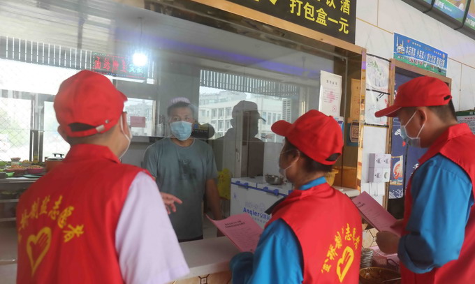 組織志愿者到板橋社區(qū)內(nèi)的飯店、居民區(qū)等地分發(fā)《疫情防控倡議書》和疫情防控知識手冊