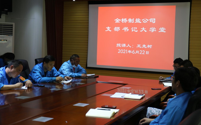 為進一步推動公司黨史學習教育走深走實,公司黨委組織開展“支部書記大學堂”活動。6月22日,加工鹽車間黨支部書記王先樹以學習黨史“悟思想、辦實事、開新局”為主題,結(jié)合工作實際,為各支部黨員干群上了一堂生動的黨課。