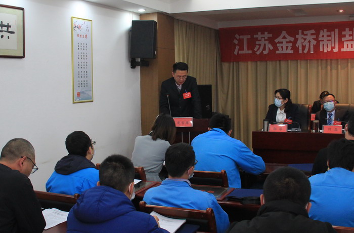 大會(huì)簽訂了《2021年度集體合同》、《2021年度經(jīng)營(yíng)認(rèn)標(biāo)責(zé)任書》,與會(huì)代表認(rèn)真審議通過(guò)了總經(jīng)理工作報(bào)告,通過(guò)了大會(huì)決議、有關(guān)方案和意見。加工鹽車間、包裝鹽車間、銷售部依次作了表態(tài)發(fā)言。大會(huì)表彰了第九屆“金橋杯”勞動(dòng)競(jìng)賽、2020年“大干四季度”勞動(dòng)競(jìng)賽的先進(jìn)集體和先進(jìn)個(gè)人以及2020年度“金橋工匠”。(金宣)