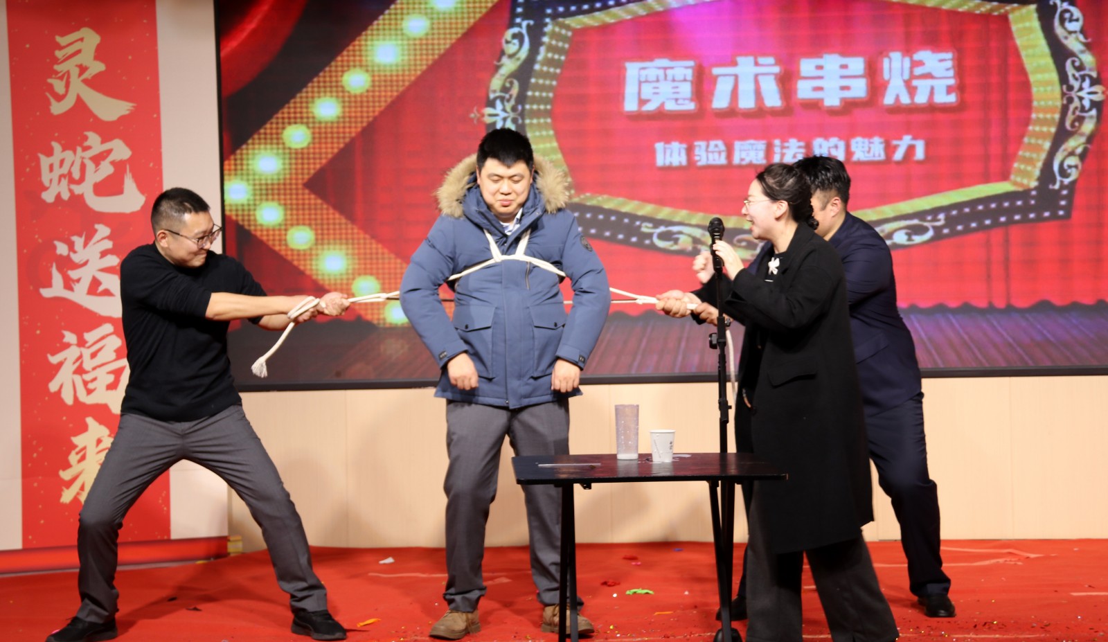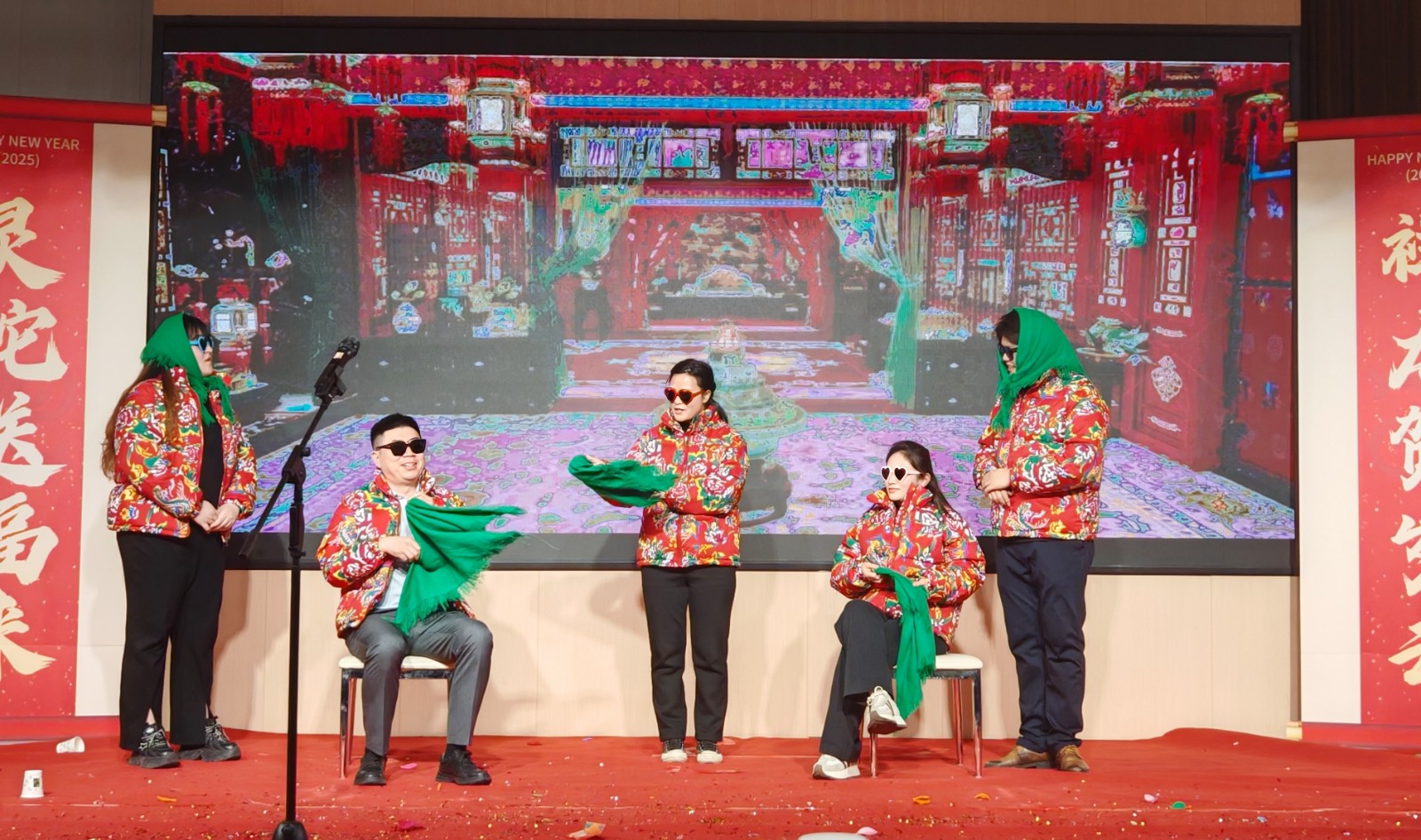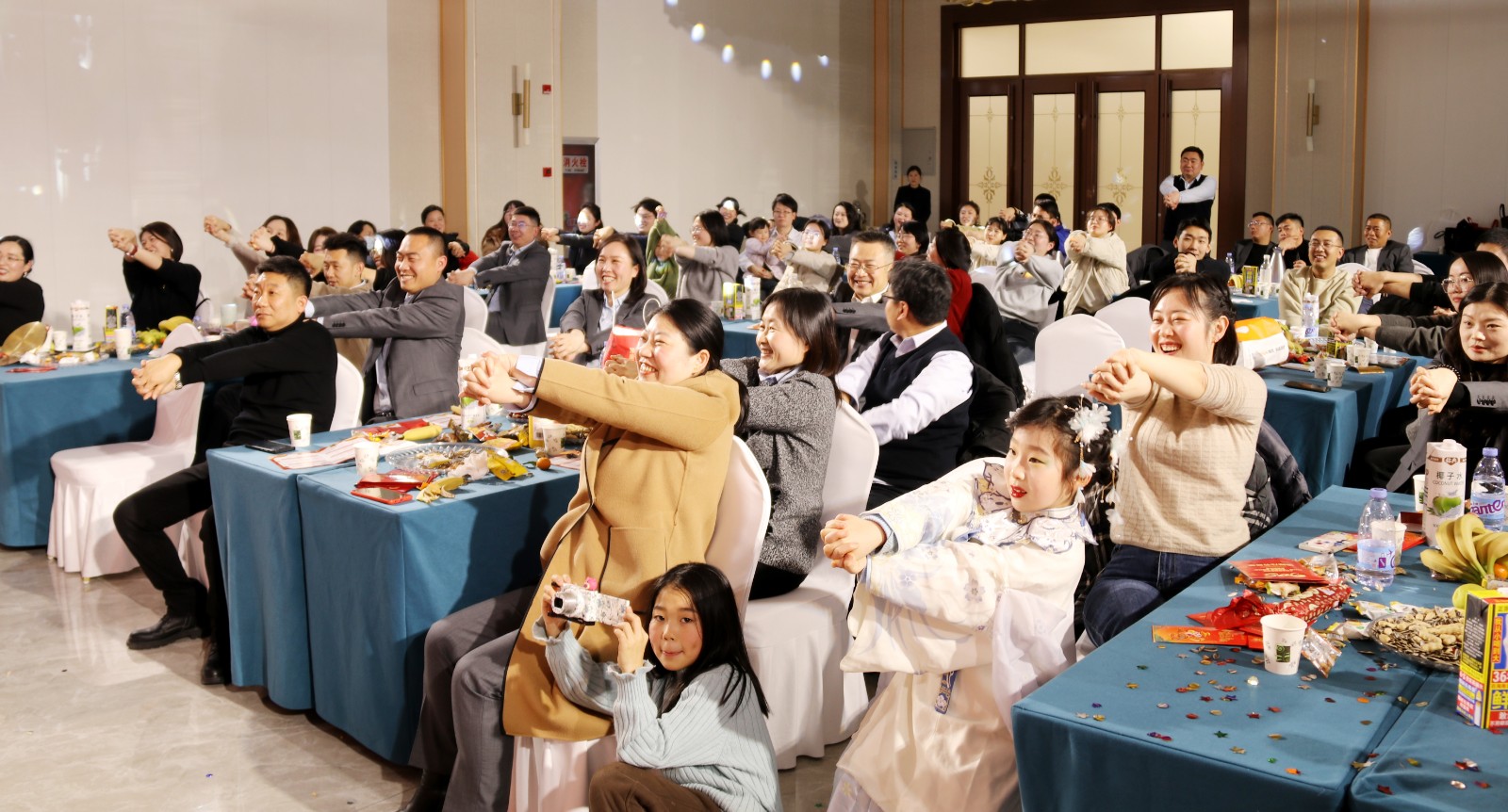 聯(lián)歡會上,職工們自編自導(dǎo)自演的詩朗誦、小品、歌曲、舞蹈等14個多種形式節(jié)目精彩紛呈。朗誦《新食光,新力量》展現(xiàn)了職工們對職工食堂建設(shè)的謳歌;舞蹈《恭喜發(fā)財》以其歡快的節(jié)奏和活潑的舞姿贏得了現(xiàn)場觀眾的陣陣掌聲;小品《甄嬛傳》則以幽默詼諧的方式,反串演繹讓大家捧腹大笑。此外,還有魔術(shù)串燒、歌曲演唱、三句半及游戲互動等環(huán)節(jié)穿插其中,歡聲笑語不斷。特別是2023年以來新入職職工表演的小合唱《相親相愛》更將整個聯(lián)歡會推向高潮。