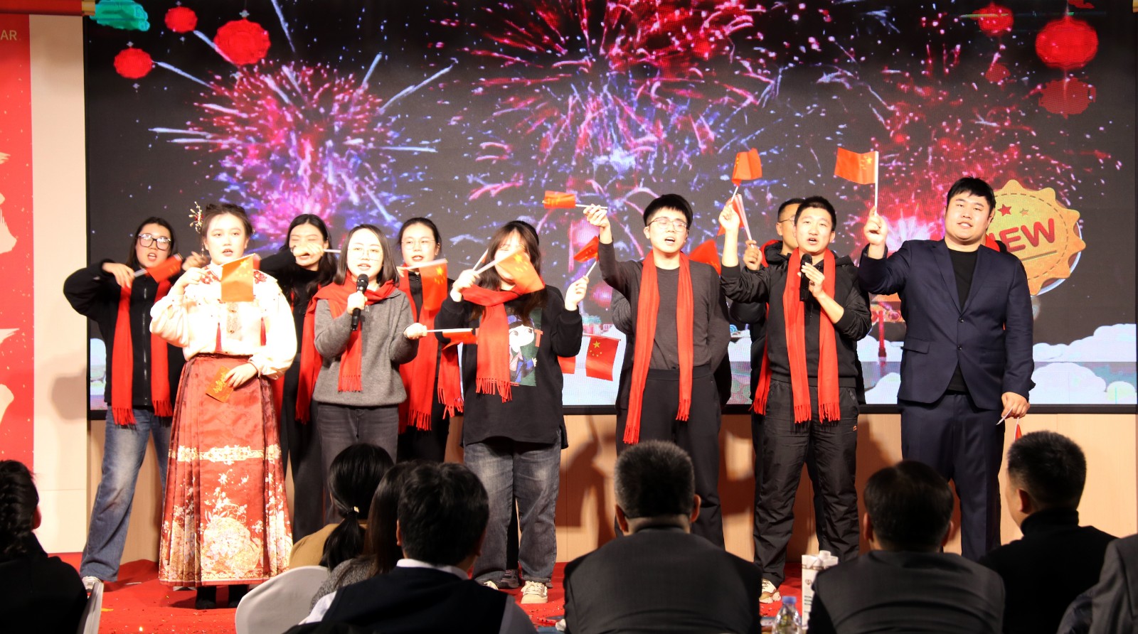 下午15點,備受期待的“金蛇獻瑞 迎春共進”辭舊迎新聯(lián)歡會在倒計時中如期舉行。聯(lián)歡會在開場舞《福歲賀新程》中拉開序幕,演員們身著喜慶的服裝,以優(yōu)美的舞姿為觀眾呈現(xiàn)了一場視覺盛宴。