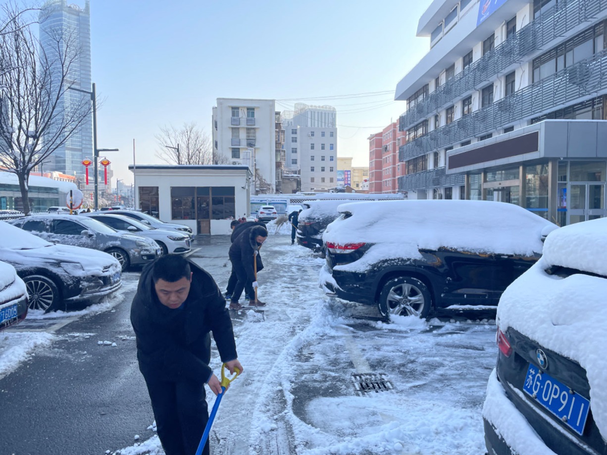 昨日,暴雪如期席卷我市,銀裝素裹間,積雪厚度也迅速增加。公司門前及院內的厚重積雪,給日常辦公與員工的出行安全埋下了不小的隱患。面對這一情況,金融板塊的員工們迅速響應,以雪為令,迎寒而上,展開了一場掃雪除冰的集體行動。