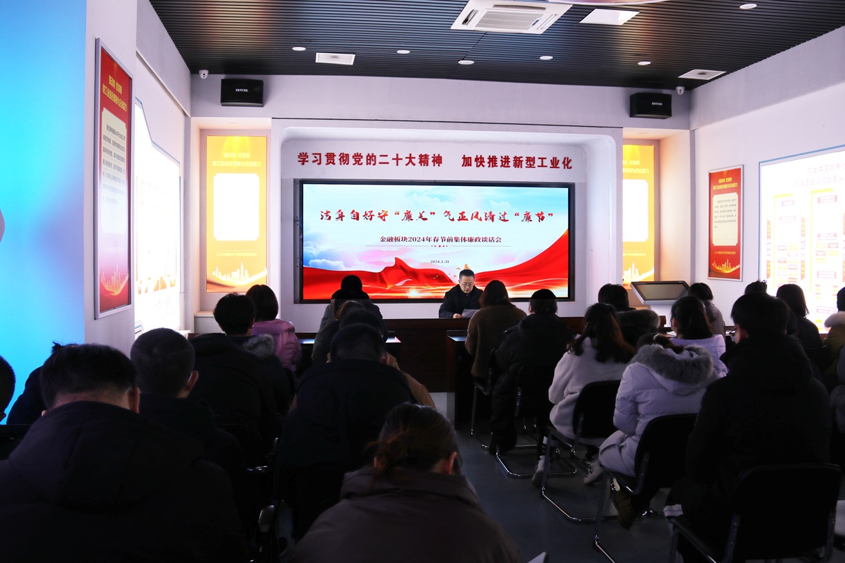 把“廉關(guān)”,過好迎新“廉潔年”。清心為治本,直道是身謀。金融板塊從金融領(lǐng)域的特殊性出發(fā),本著廉政談話全覆蓋的原則,緊盯春節(jié)節(jié)點、緊盯常見“節(jié)日病”,要求黨員干部以上率下,嚴(yán)格要求自己、嚴(yán)格帶好隊伍,守好責(zé)任田,管好身邊人,做到過節(jié)不忘警惕,過節(jié)不忘紀(jì)律,過節(jié)不忘盡責(zé),嚴(yán)格執(zhí)行中央八項規(guī)定,時刻保持自省、自警、自律、自勵,清廉過節(jié),堅決杜絕“節(jié)日腐敗”。