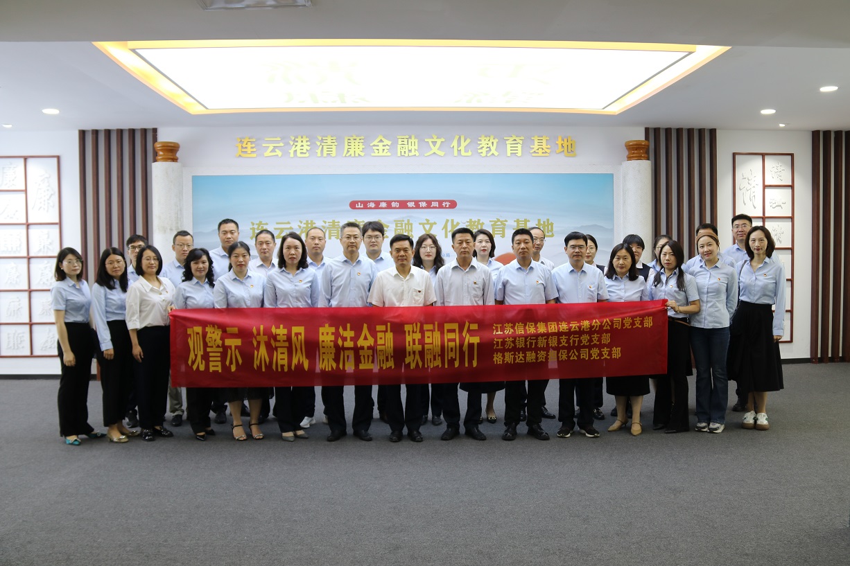 為進(jìn)一步深入推進(jìn)清廉金融文化建設(shè),引導(dǎo)黨員干部牢固樹立廉潔自律意識,做到警鐘長鳴,切實發(fā)揮“聯(lián)融”黨建品牌的牽引帶動作用。近日,我支部與江蘇信保集團(tuán)連云港分公司黨支部、江蘇銀行新銀支行黨支部聯(lián)合組織“觀警示·沐清風(fēng) 廉潔金融·聯(lián)融同行”共建活動,一同前往清廉金融文化教育基地,接受反腐倡廉教育,感受清廉金融文化洗禮。