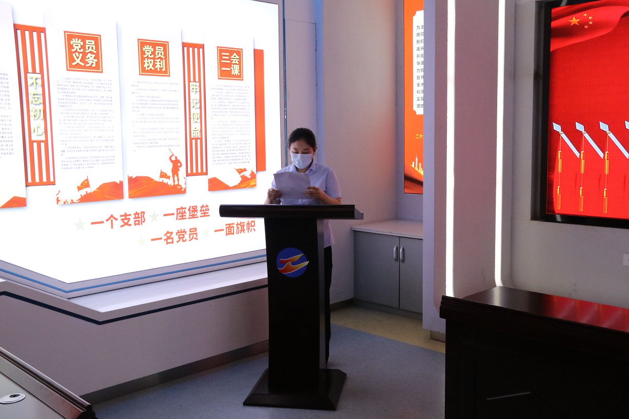 隨后,支部書記徐兵為大家上了一堂題為“增強黨性修養(yǎng),筑牢使命擔當”的專題黨課,他結合黨的歷史及當前國內(nèi)國際局勢,生動的闡釋黨的革命精神和光輝歷程,旨在讓新黨員感受到了黨的神圣,進一步激發(fā)黨員的愛國熱情和奮斗精神,激勵廣大黨員黨員以自身的實際行動積極實踐誓詞,這堂黨課對于新老黨員們來說,都是一次寶貴的學習機會。黨課最后,支部書記徐兵帶領新老黨員一起,面向鮮紅的黨旗,舉起右拳,重溫入黨誓詞。