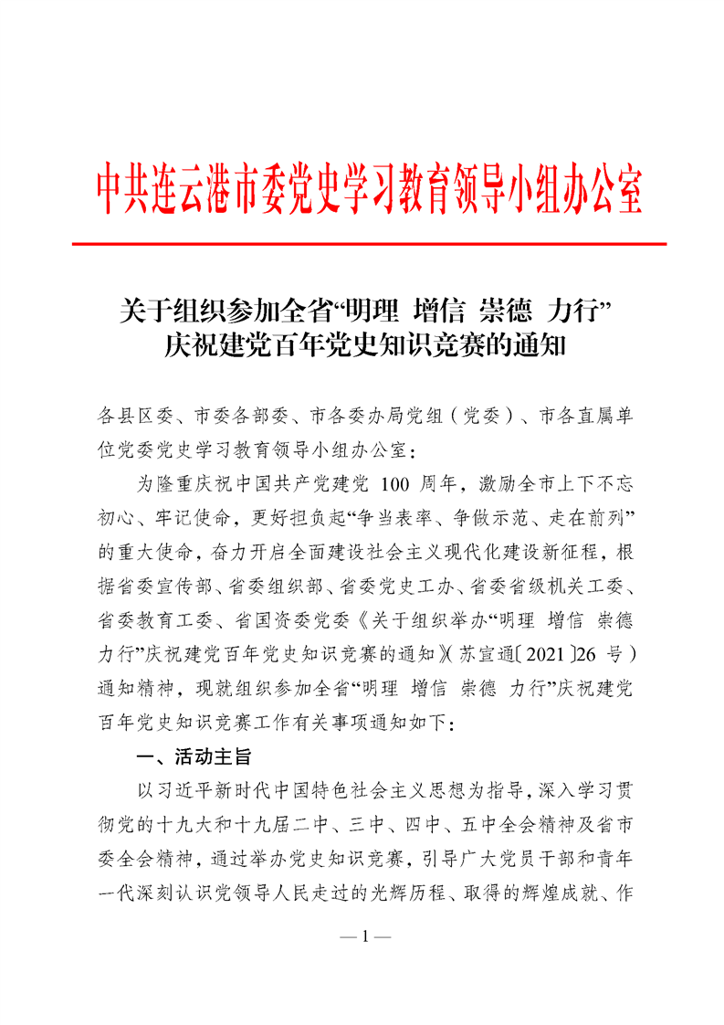 關(guān)于組織參加全省“明理 增信 崇德 力行” 慶祝建黨百年黨史知識(shí)競(jìng)賽的通知