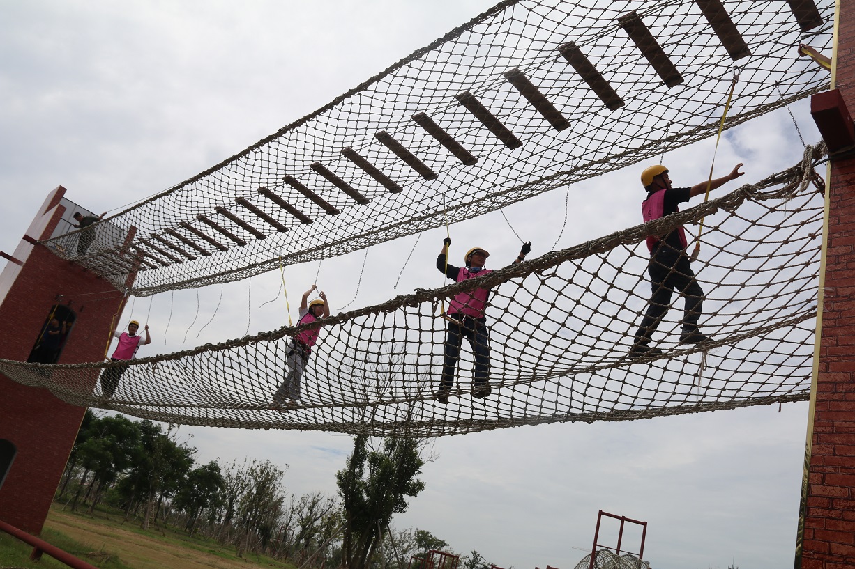 接著,四個(gè)小組先后體驗(yàn)了“強(qiáng)渡大渡河”、“飛奪瀘定橋”等紅色實(shí)景教育項(xiàng)目,使廣大職工體會(huì)到當(dāng)年紅軍長(zhǎng)征的艱苦環(huán)境,感受了重走長(zhǎng)征路的氛圍,增進(jìn)了職工之間的團(tuán)隊(duì)友誼、鍛煉了隊(duì)員勇于挑戰(zhàn)的堅(jiān)強(qiáng)意志。