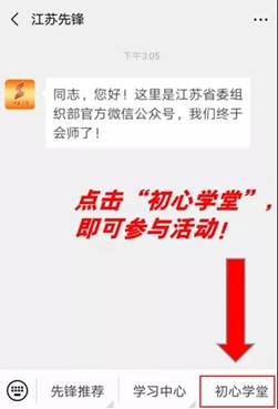 | 各單位黨群工作部: 為引導(dǎo)廣大黨員干部認(rèn)真學(xué)習(xí)《習(xí)近平談治國理政》第三卷,推動黨的科學(xué)理論“飛入尋常百姓家”,“江蘇先鋒”公眾號特開辟“初心學(xué)堂”小程序,請組織本單位黨員干部8月12日—10月30日登錄“初心學(xué)堂”小程序一起聽音頻、讀原著、悟原理?。ㄕ埜魑稽h員登陸后,單位名稱統(tǒng)一填寫為:連云港市工業(yè)投資集團有限公司) 第一步:關(guān)注“江蘇先鋒”公眾號