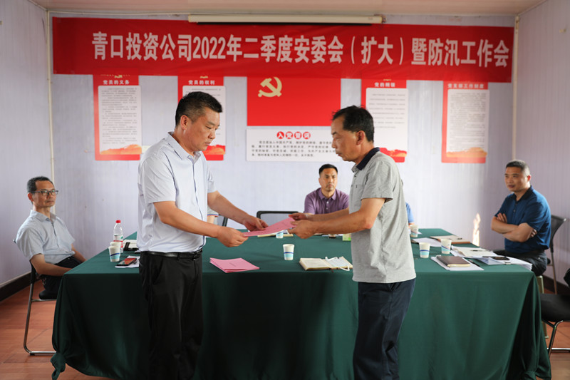演練結(jié)束后,工作會(huì)在承擔(dān)主要防汛任務(wù)的三洋分場(chǎng)召開(kāi)。會(huì)上,生產(chǎn)安全部匯報(bào)二季度安全工作情況,副總經(jīng)理許太冬傳達(dá)《關(guān)于深刻汲取近期事故教訓(xùn)采取嚴(yán)厲措施堅(jiān)決遏制事故多發(fā)勢(shì)頭的通知》,副總經(jīng)理?xiàng)钍孛鞑贾霉景踩ぷ骷胺姥垂ぷ?,各單位遞交2022年度防汛工作責(zé)任書。