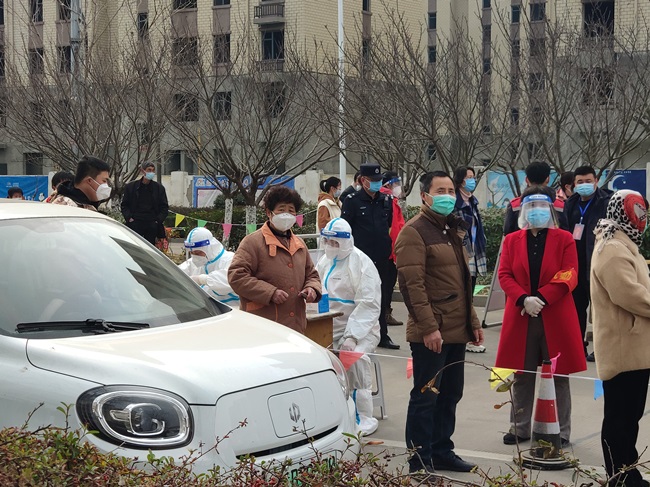 從3月5日起,公司配合社區(qū)已陸續(xù)啟動(dòng)了5輪重點(diǎn)區(qū)域人員核酸檢測(cè),及時(shí)、高效、科學(xué)、有序。“居民朋友們,請(qǐng)?zhí)崆皽?zhǔn)備好健康碼、身份證,全程佩戴口罩,有序排隊(duì),保持距離,等候檢測(cè)……”在核算測(cè)點(diǎn)可以看到,醫(yī)護(hù)“大白”、黨員志愿者等各司其職,有條不紊地開(kāi)展各項(xiàng)工作。參加核酸檢測(cè)的居民在“小喇叭”的提醒和工作人員的引導(dǎo)下陸續(xù)進(jìn)行檢測(cè)。排隊(duì)、測(cè)體溫、掃碼、進(jìn)入檢測(cè)區(qū)域、依次進(jìn)行人員登記、采樣……整個(gè)過(guò)程及時(shí)、高效、科學(xué)、有序。為確保核酸檢測(cè)做到應(yīng)檢盡檢,公司還聯(lián)合社區(qū)開(kāi)展“敲門行動(dòng)”,協(xié)助配合做好上門信息登記、政策宣傳等工作,用實(shí)際行動(dòng),擔(dān)當(dāng)作為,為百姓筑牢了抗疫防線。