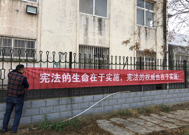 低頭看手機,抬頭看大屏,青口公司憲法宣傳隨處可見?;顒又校瑧椃▽W習宣傳從支部延伸到一線班組,從線下拓展到網絡云端,電子屏結合墻上的橫幅標語,一場場憲法宣傳活動火熱開展,將法律知識送到職工群眾身邊,讓法治精神融入企業(yè)高質發(fā)展。(青 宣)