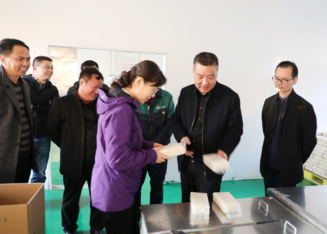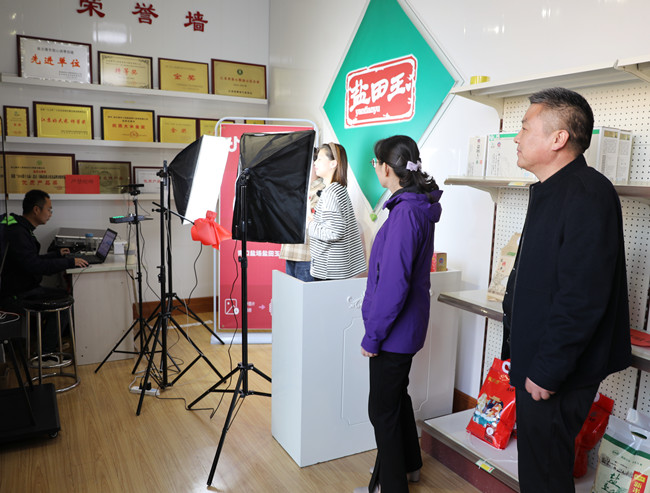 調(diào)研組先后參觀“鹽田玉”抖音帶貨直播間、“鹽田玉”生產(chǎn)加工車(chē)間、大新農(nóng)場(chǎng)水稻收割現(xiàn)場(chǎng)。