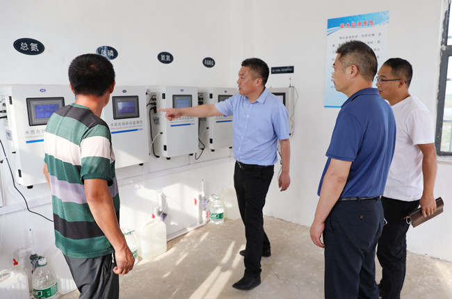 在黃海養(yǎng)殖場(chǎng),史董認(rèn)真聽取養(yǎng)殖場(chǎng)負(fù)責(zé)同志對(duì)尾水處理工藝的介紹,詳細(xì)了解黃海養(yǎng)殖場(chǎng)物聯(lián)網(wǎng)平臺(tái)、污水處理流程、水質(zhì)信息采集與監(jiān)測(cè)系統(tǒng)等,并實(shí)地考察了尾水處理監(jiān)測(cè)室、污水循環(huán)處理設(shè)施、人工濕地生態(tài)系統(tǒng)等,就污水處理工程設(shè)計(jì)施工、污水監(jiān)測(cè)指標(biāo)、養(yǎng)殖生產(chǎn)用水等問(wèn)題與養(yǎng)殖場(chǎng)負(fù)責(zé)同志進(jìn)行了深入的探討與交流。