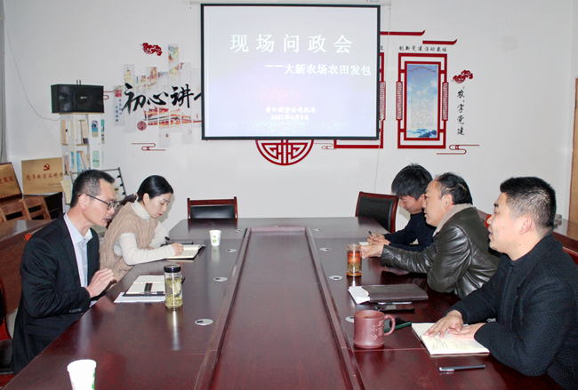 ? ? ? ?“大新農(nóng)場(chǎng)本次農(nóng)田發(fā)包,比往年價(jià)格有了較大提升,具體的定價(jià)依據(jù)是什么?”、“農(nóng)田發(fā)包是否按照流程,對(duì)條田工進(jìn)行了公開(kāi)公示?”……在大新農(nóng)場(chǎng)“農(nóng)田發(fā)包”問(wèn)政會(huì)現(xiàn)場(chǎng),公司紀(jì)委針對(duì)涉及到的敏感問(wèn)題進(jìn)行現(xiàn)場(chǎng)問(wèn)政,大新農(nóng)場(chǎng)負(fù)責(zé)人及相關(guān)人員接受了現(xiàn)場(chǎng)問(wèn)政,并一一給出詳細(xì)答復(fù)。