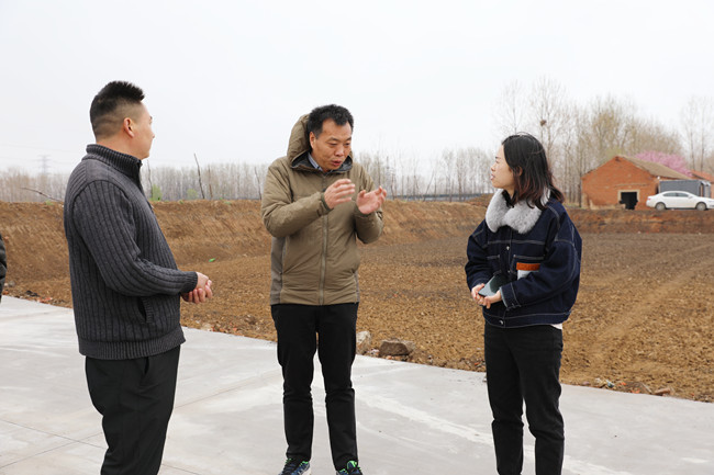 4月2日上午,冒著淅瀝瀝的春雨,青口公司副總經(jīng)理許太冬帶領(lǐng)樊家選、趙華兵兩位技術(shù)指導(dǎo)小組成員,來(lái)到海頭鎮(zhèn)龍河村新復(fù)墾的240畝土地現(xiàn)場(chǎng),與結(jié)對(duì)聯(lián)建的龍河村村委成員熱切交流,為新復(fù)墾的土地發(fā)展規(guī)劃出謀劃策。
