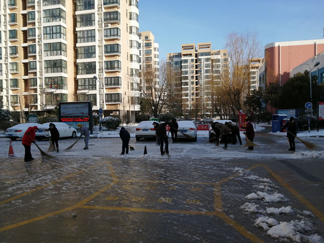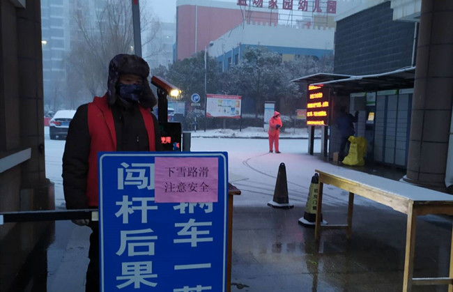 作為公司職工居住的鹽場家園小區(qū),按照金海社區(qū)要求,執(zhí)行封閉管理,每戶只發(fā)一個通行證,除門衛(wèi)外,管理人員全部參與輪流值班。特殊天氣時,大門的看守更加嚴格與認真,值班人員對過往的人員登記、量體溫,確保沒有問題后才給與放行。大雪洋洋灑灑,清晨的鹽場家園銀裝素裹,泰祥物業(yè)的工作人員,佩戴好口罩,拿著掃帚彎著腰,揮動手中的工具在清理積雪。雪已結成冰,但他們不畏寒冷,堅毅有力,鏟掉冰凍。寒冷的天氣,絲毫沒有影響大家的熱情,先主路后支路,逐漸掃出一條整潔的路面,疫情面前,泰祥物業(yè)人用行動用嚴格用責任溫暖了業(yè)主的心。