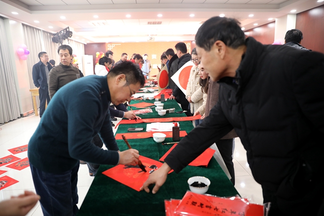 春節(jié)前夕,喜氣洋洋,為了營造祥和歡樂的節(jié)日氛圍,弘揚中國傳統(tǒng)文化,公司邀請連云港市簡帛書法協(xié)會的老師們來到青口公司,義務為民寫春聯(lián),送祝福。