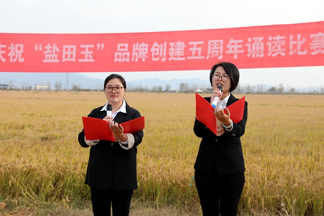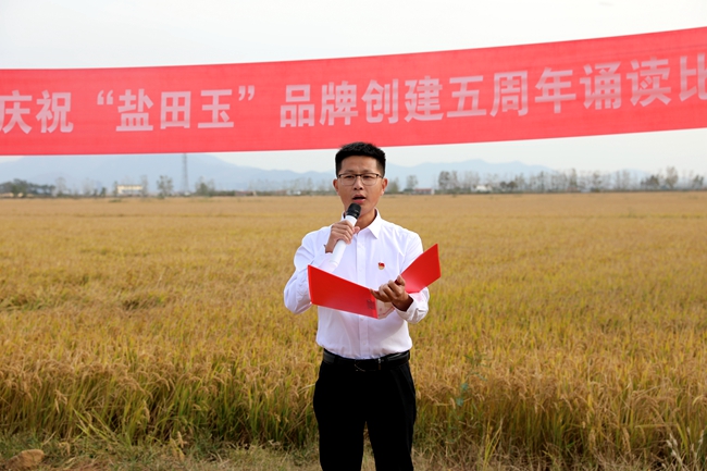 ? ?金秋十月,稻浪播香,又到一年豐收季。為慶祝“鹽田玉”品牌創(chuàng)建五周年,營(yíng)造企業(yè)文化氛圍,展現(xiàn)職工群眾健康向上的精神風(fēng)貌,10月25日下午,投資公司于萬(wàn)畝稻田間舉行慶祝“鹽田玉”品牌創(chuàng)建五周年誦讀比賽。公司黨委委員、副總經(jīng)理周緒祥,各單位黨政工負(fù)責(zé)人、機(jī)關(guān)全體管理人員,大新農(nóng)場(chǎng)條田工,米業(yè)營(yíng)銷(xiāo)中心生產(chǎn)銷(xiāo)售團(tuán)隊(duì)參加活動(dòng)。