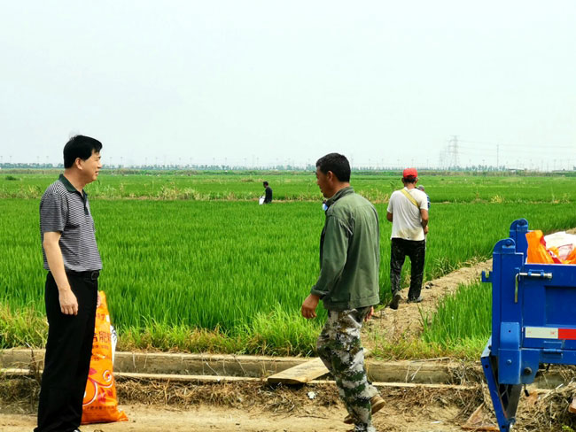 在大新水稻種植現(xiàn)場(chǎng),胡書(shū)記認(rèn)真查看了各家條田的水稻生長(zhǎng)情況,在農(nóng)場(chǎng)支部書(shū)記的陪同下,與田狀元趙華兵為首的四名共產(chǎn)黨員,在田頭親切交談,詳細(xì)詢問(wèn)病蟲(chóng)害防治和施肥等情況, 關(guān)心 條田工的生產(chǎn)和生活是否存在困難,特別是結(jié)合 “不忘初心、牢記使命”主題教育活動(dòng)在即 , 并現(xiàn)場(chǎng)掌握他們學(xué)習(xí)強(qiáng)國(guó)的使用情況,了解他們的真實(shí)想法,為黨建工作的開(kāi)展掌握一手資料。