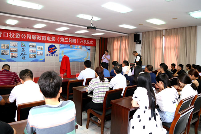 7 月 10 日上午,青口公司隆重舉行廉政微電影《第三只眼》開(kāi)機(jī)儀式。集團(tuán)公司紀(jì)委副書(shū)記王建松、 青口公司黨委書(shū)記胡傳法及全體班子成員、機(jī)關(guān)全體管理人員、劇組人員參加了本次儀式。