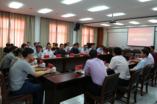 7月3日上午,臺(tái)北投資公司董事長(zhǎng)、黨委書記王德志率考察團(tuán)一行30余人到我公司考察調(diào)研。公司黨委書記、董事長(zhǎng)胡傳法、總經(jīng)理史祥平,在家領(lǐng)導(dǎo)班子成員陪同調(diào)研。