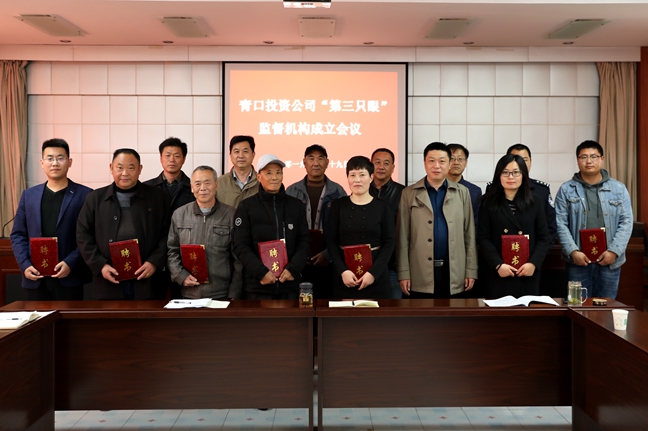4 月 19 日上午,青口投資公司在四樓會議室召開“第三只眼”監(jiān)督機構(gòu)成立會議。公司黨委書記、董事長胡傳法,黨委委員、分管領(lǐng)導宋晟曄及受聘的 12 名監(jiān)督員參加了會議。