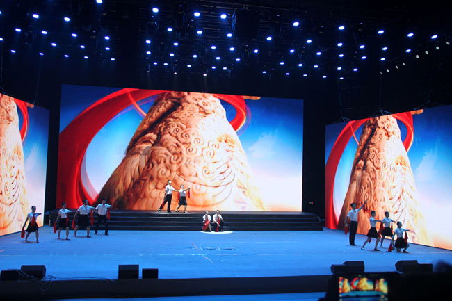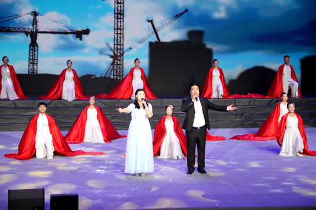 此次文藝匯演在歌舞《不忘初心》中拉開序幕,2名主唱用高亢、嘹亮的歌聲,深情訴說著對(duì)祖國的崇敬與熱愛。男、女歌手唱功扎實(shí),臺(tái)風(fēng)穩(wěn)健,贏得在場(chǎng)觀眾的陣陣掌聲。伴舞的16名舞蹈演員身著白衣,手握紅旗,用優(yōu)美的舞姿、整齊的動(dòng)作,盡情描繪出了每一名工投兒女不忘初心、砥礪奮進(jìn)的豪情!配合精心制作的視頻背景,《不忘初心》作為開場(chǎng)節(jié)目受到了到場(chǎng)觀眾的一致好評(píng)。