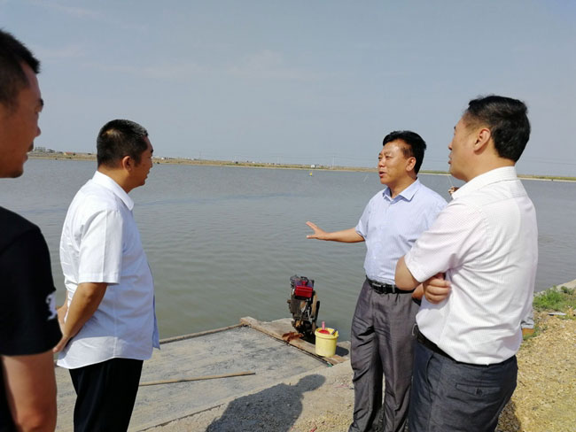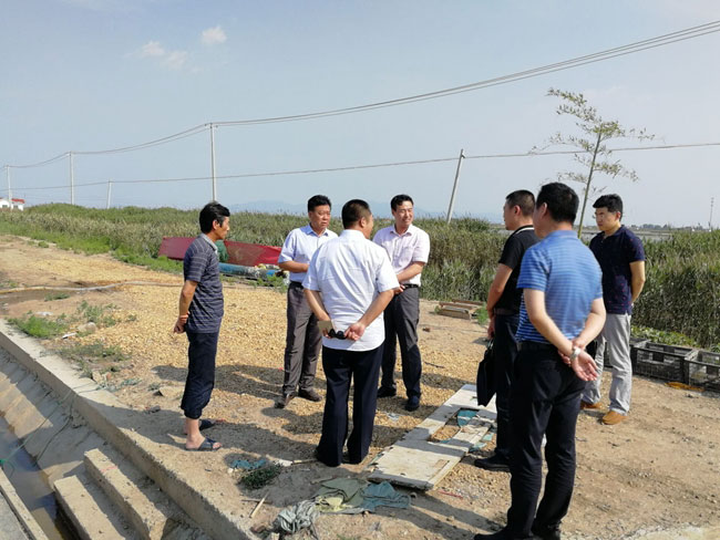 ? ? ? ?調(diào)研團(tuán)一行首先到養(yǎng)殖大戶劉英軍的養(yǎng)殖池塘查看養(yǎng)殖現(xiàn)狀,隨后到三洋排水站查看養(yǎng)殖池塘進(jìn)排水水系是否有序暢通。