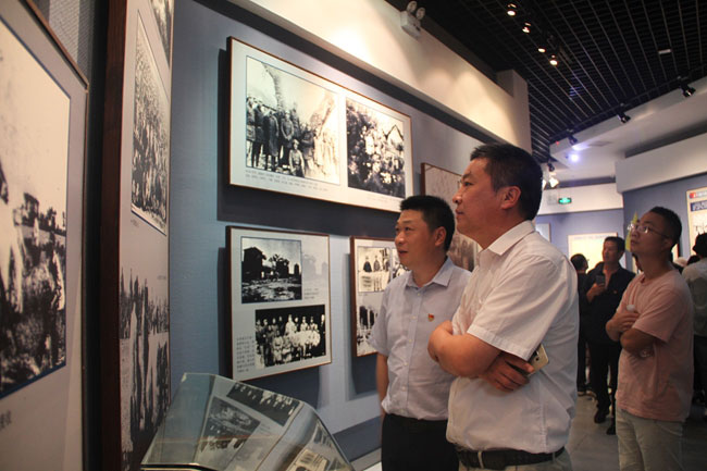 來(lái)到紀(jì)念館,醒目的藍(lán)白相間的 “N4A”臂章圖案,鑲嵌在展廳正門(mén)上方,兩側(cè)旗行的花崗石陰雕畫(huà),藝術(shù)地再現(xiàn)了新四軍魚(yú)八路軍在白駒獅子口勝利會(huì)師和皖南事變后新四軍在鹽城重建軍部的歷史場(chǎng)面。進(jìn)入館中,黨員們一路認(rèn)真傾聽(tīng)講解員講述新四軍的光輝戰(zhàn)斗歷程。1000多幅照片、大批文物史料、一幅幅還原歷史的逼真場(chǎng)景將我們帶回到那個(gè)戰(zhàn)火紛爭(zhēng)的年代,體會(huì)革命先烈在崢嶸歲月中頑強(qiáng)抗擊日軍的英雄本色和為中國(guó)革命事業(yè)不怕?tīng)奚o(wú)私奉獻(xiàn)的革命情懷。在新四軍領(lǐng)導(dǎo)的雕像前,黨員們嚴(yán)肅認(rèn)真,面朝黨旗,重溫入黨宣誓。