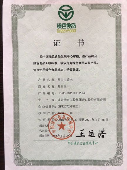 經(jīng)過 2年時間的奔波和整理材料,“鹽田玉”米于2018年5月通過認(rèn)證,獲得綠色食品標(biāo)志使用權(quán)。